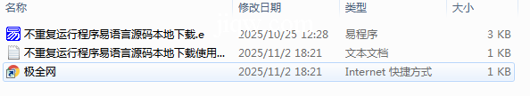 【极全网】不重复运行程序易语言源码本地下载目录1个子文件夹0个文件3个