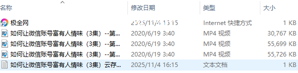 【极全网】如何让微信账号富有人情味(3集)云存储资源下载目录1个子文件夹0个文件5个