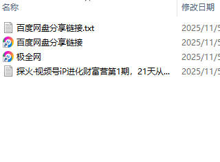 【极全网】探火·视频号iP进化财富营第1期,21天从0到1,从定位到变现云存储资源下载目录1个子文件夹0个文件4个
