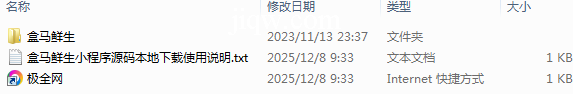 【极全网】盒马鲜生小程序源码本地下载目录1个子文件夹1个文件2个