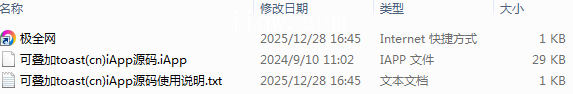 【极全网】可叠加toast(cn)iApp源码目录1个子文件夹0个文件3个