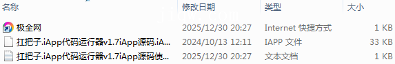 【极全网】扛把子.iApp代码运行器v1.7iApp源码目录1个子文件夹0个文件3个