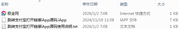 【极全网】跳转支付宝打开链接iApp源码目录1个子文件夹0个文件3个