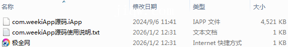 【极全网】com.weekiApp源码目录1个子文件夹0个文件3个