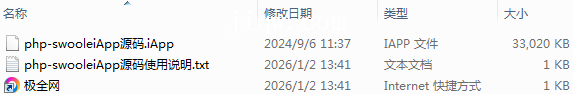 【极全网】php-swooleiApp源码目录1个子文件夹0个文件3个