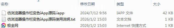 【极全网】仿浏览器操作栏变色iApp源码目录1个子文件夹0个文件3个