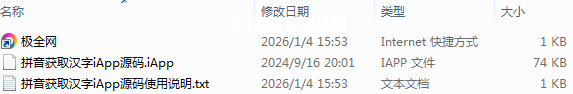 【极全网】拼音获取汉字iApp源码目录1个子文件夹0个文件3个