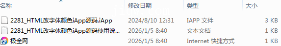 【极全网】2281_HTML改字体颜色iApp源码目录1个子文件夹0个文件3个