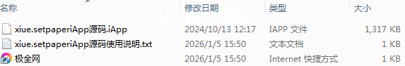 【极全网】xiue.setpaperiApp源码目录1个子文件夹0个文件3个