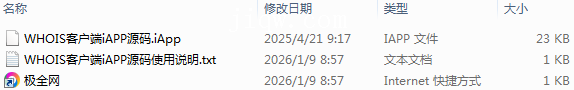 【极全网】WHOIS客户端iAPP源码目录1个子文件夹0个文件3个