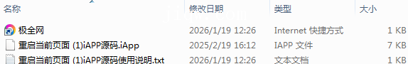 【极全网】重启当前页面 (1)iAPP源码目录1个子文件夹0个文件3个