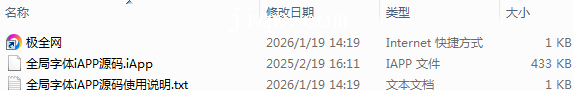 【极全网】全局字体iAPP源码目录1个子文件夹0个文件3个