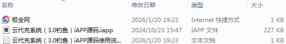 【极全网】云代充系统(3.0钓鱼)iAPP源码目录1个子文件夹0个文件3个