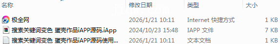 【极全网】搜索关键词变色 蛋壳作品iAPP源码目录1个子文件夹0个文件3个
