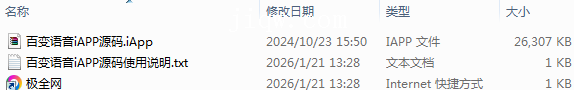 【极全网】百变语音iAPP源码目录1个子文件夹0个文件3个