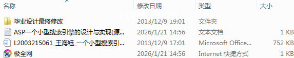 【极全网】ASP一个小型搜索引擎的设计与实现(源代码+论文)-本地下载目录1个子文件夹1个文件3个