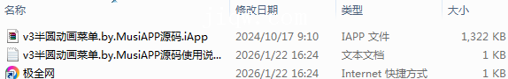 【极全网】v3半圆动画菜单.by.MusiAPP源码目录1个子文件夹0个文件3个