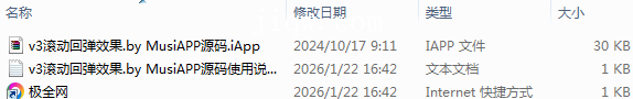 【极全网】v3滚动回弹效果.by MusiAPP源码目录1个子文件夹0个文件3个