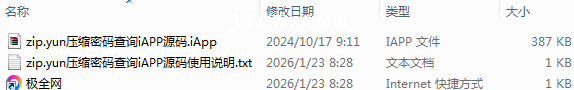 【极全网】zip.yun压缩密码查询iAPP源码目录1个子文件夹0个文件3个