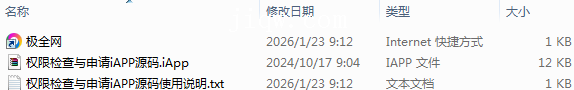 【极全网】权限检查与申请iAPP源码目录1个子文件夹0个文件3个