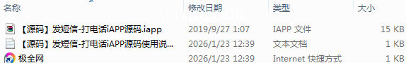 【极全网】【源码】发短信-打电话iAPP源码目录1个子文件夹0个文件3个