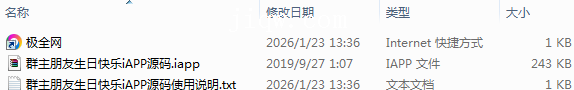 【极全网】群主朋友生日快乐iAPP源码目录1个子文件夹0个文件3个