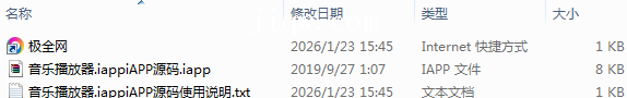 【极全网】音乐播放器.iappiAPP源码目录1个子文件夹0个文件3个