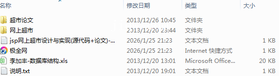 【极全网】jsp网上超市设计与实现(源代码+论文)-本地下载目录1个子文件夹2个文件4个