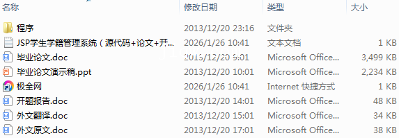 【极全网】JSP学生学籍管理系统(源代码+论文+开题报告+外文翻译+答辩PPT)-本地下载目录1个子文件夹1个文件7个