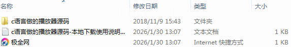 【极全网】c语言做的播放器源码-本地下载目录1个子文件夹1个文件2个