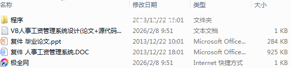 【极全网】VB人事工资管理系统设计(论文+源代码+答辩PPT)-本地下载目录1个子文件夹1个文件4个