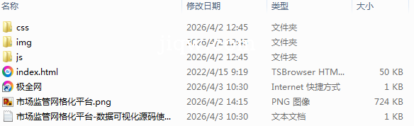 【极全网】市场监管网格化平台-数据可视化源码目录1个子文件夹3个文件4个