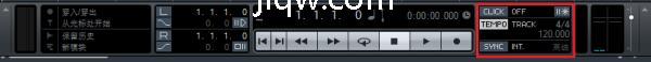 我们看到工程的下方有一排长条形的界面,按住边缘可以移动,这是cubase的走带控制器。