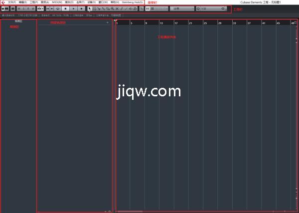 Cubase的整个界面主要分为几个区域:菜单栏,工具栏,观测区,创建轨道区,工程区,一定要记熟~