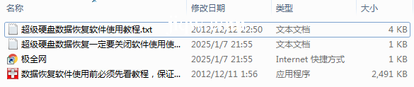 极全网】超级硬盘数据恢复一定要关闭软件使用目录1个子文件夹0个文件4个