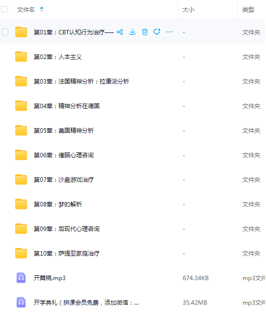 【极全网】【壹心理】心理咨询技术与疗法入门(完结)云存储资源下载目录1个子文件夹0个文件4个