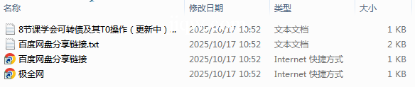 【极全网】8节课学会可转债及其T0操作(更新中)云存储资源下载目录1个子文件夹0个文件4个
