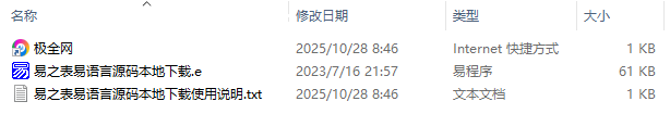 【极全网】易之表易语言源码本地下载目录1个子文件夹0个文件3个