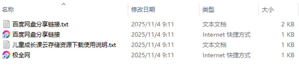 【极全网】儿童成长课云存储资源下载目录1个子文件夹0个文件4个