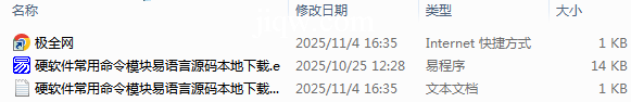 【极全网】硬软件常用命令模块易语言源码本地下载目录1个子文件夹0个文件3个