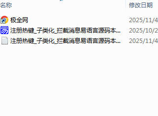 【极全网】注册热键_子类化_拦截消息易语言源码本地下载目录1个子文件夹0个文件3个
