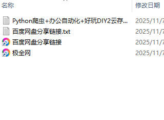 【极全网】Python爬虫+办公自动化+好玩DIY2云存储资源下载目录1个子文件夹0个文件4个