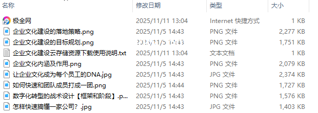 【极全网】企业文化建设云存储资源下载目录1个子文件夹0个文件9个