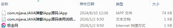 【极全网】com.mjava.JAVA弹窗iApp源码目录1个子文件夹0个文件3个