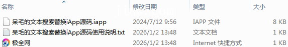 【极全网】呆毛的文本搜索替换iApp源码目录1个子文件夹0个文件3个
