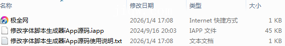 【极全网】修改字体脚本生成器iApp源码目录1个子文件夹0个文件3个