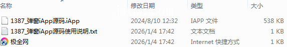 【极全网】1387_弹窗iApp源码目录1个子文件夹0个文件3个