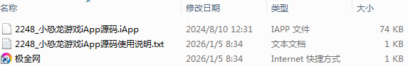 【极全网】2248_小恐龙游戏iApp源码目录1个子文件夹0个文件3个