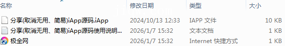 【极全网】分享(取消无用、简易)iApp源码目录1个子文件夹0个文件3个