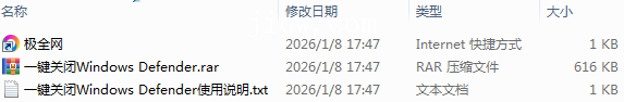 【极全网】一键关闭Windows Defender目录1个子文件夹0个文件3个